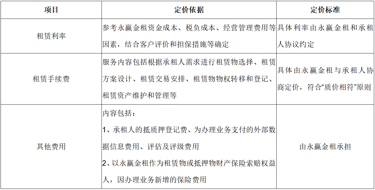4.本定价标准解释权归永赢金融租赁有限公司所有。