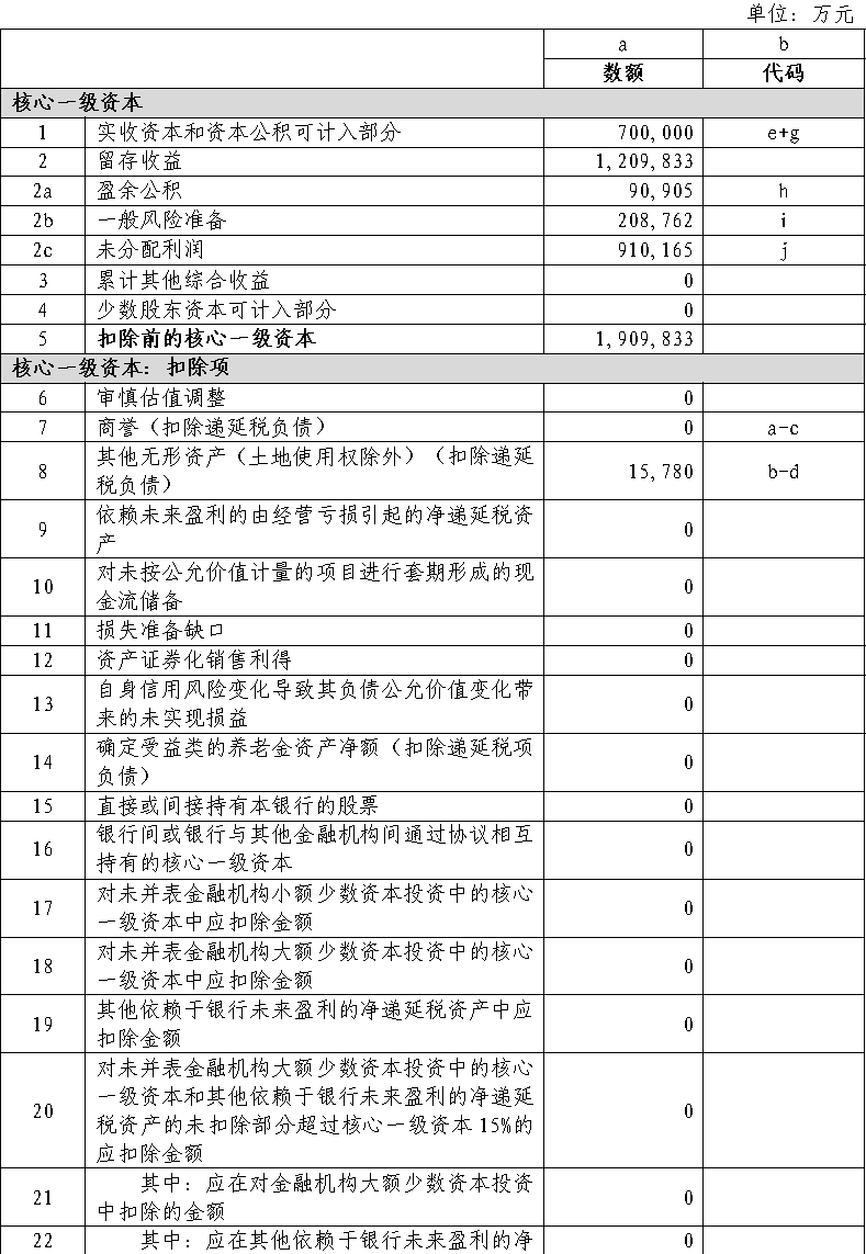 2025年12月31日,公司根据《商业银行资本管理办法》计算的核心一级资本充足率12.42%,一级资本充足率12.42%,资本充足率13.57%,杠杆率11.96%,均满足监管要求。